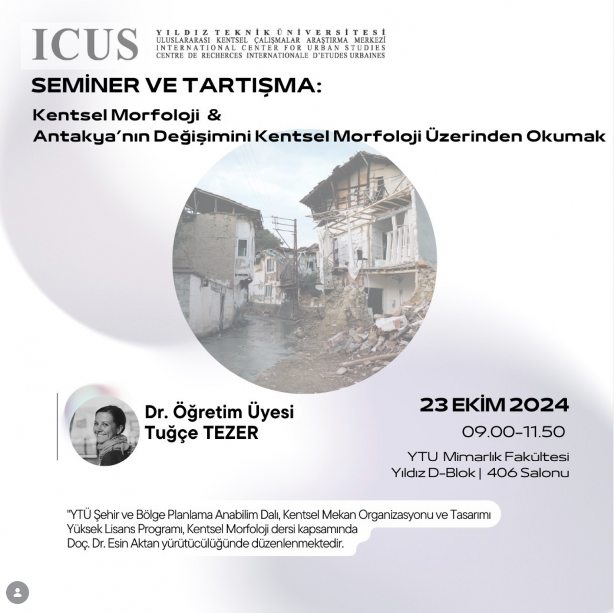 "Kentsel Morfoloji Bakışıyla Antakya’nın Değişimi Depremden Önce Depremden Sonra" Semineri | Dr. Öğr. Üyesi Tuğçe Tezer | 18 Ekim 2023